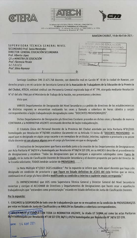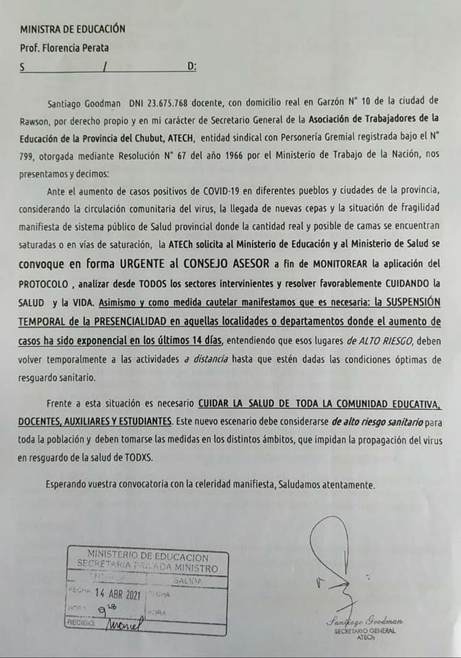 Ante el aumento de casos positivos de COVID-19, se realizaron las siguientes presentaciones dirigidas a la Ministra de Educación, la Supervisora Técnica General de Nivel Secundario y el Director General de Educación Secundaria.