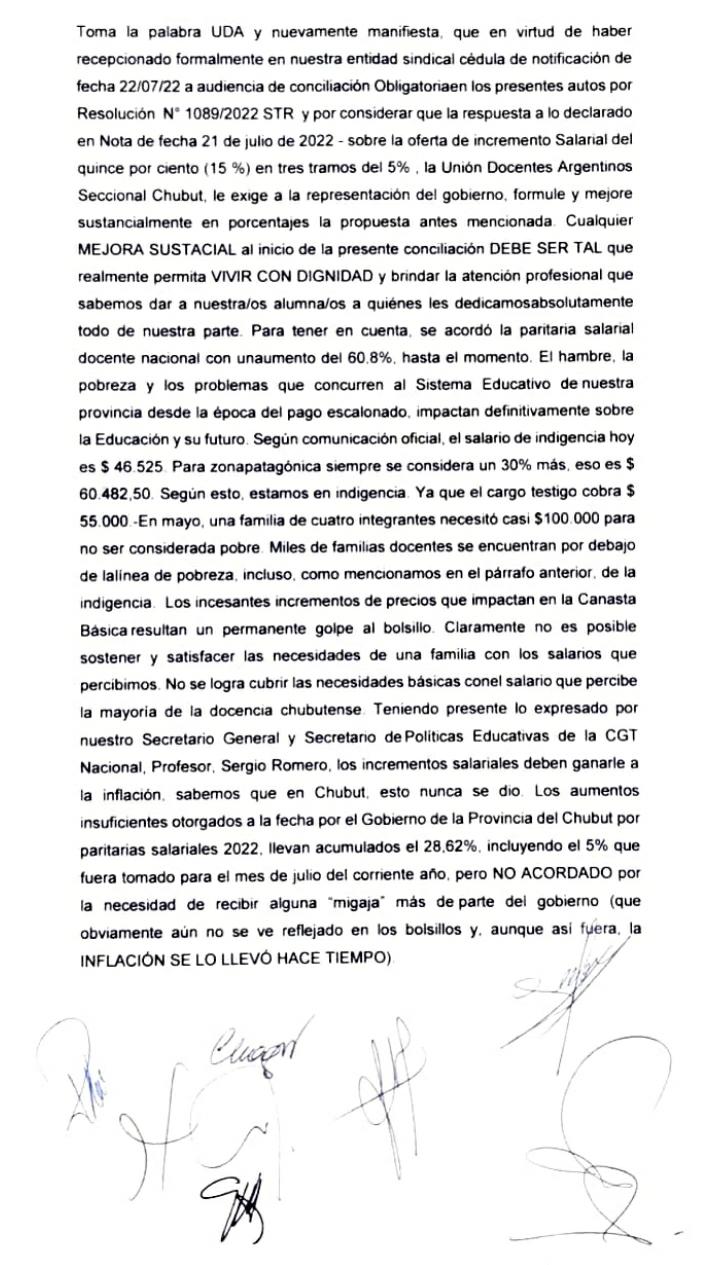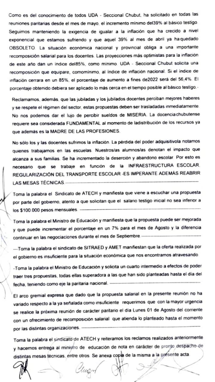 Dejamos constancia del acta de la reunión realizada este viernes 29 de julio de 2022 en la ciudad de Rawson.