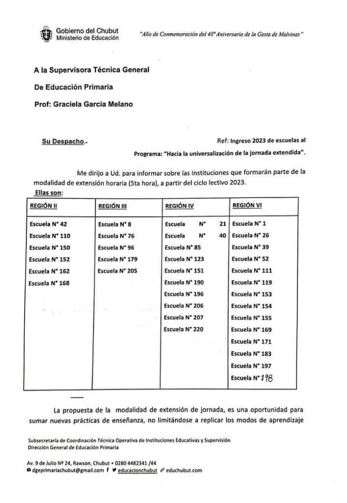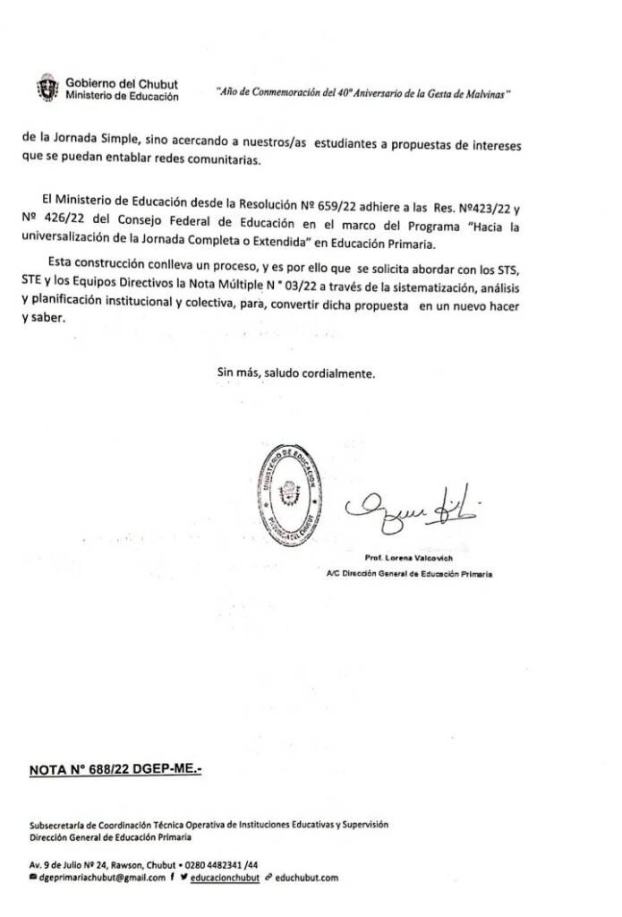 Nota del Gobierno de Chubut:
