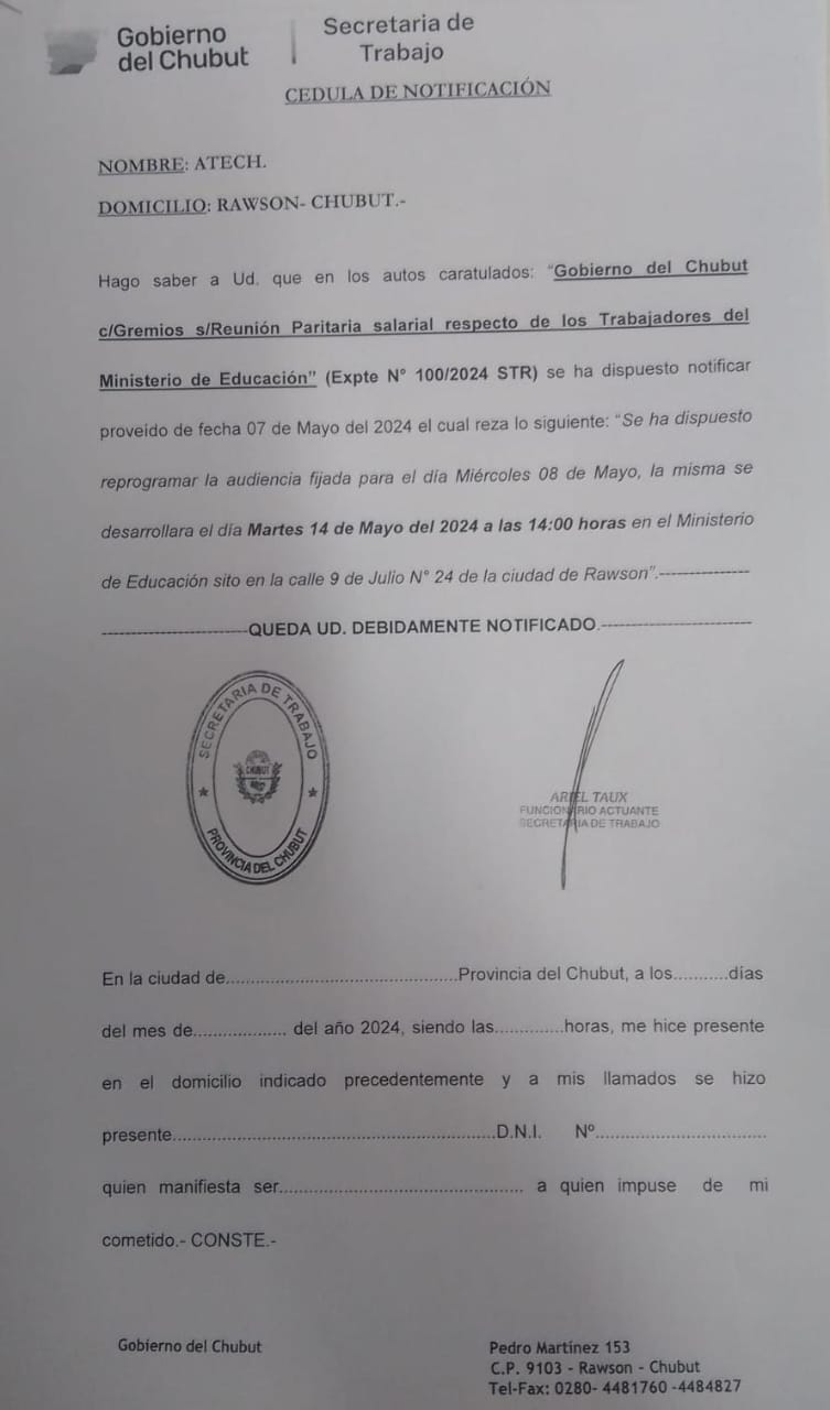 El gobierno cambió la fecha de la Reunión Paritaria convocada para el miércoles 8 de mayo al martes 14 de mayo.