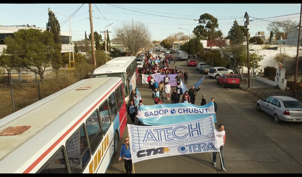 En Rawson realizamos una concentración en el Ministerio de Educación para, sobre las 15.00 horas, presentarnos en la reunión paritaria que nuevamente nos cambiaron de lugar (el lugar original sería la Secretaría de Trabajo).