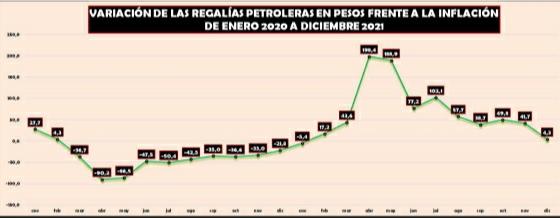 El buen panorama recaudatorio de Chubut también se trasladó al rubro de las regalías petroleras debido a que en todo el 2021 aumentaron el 99,8%, producto de la suba del precio del crudo y de la devaluación del peso que impacta de llenó en las regalías que se cobran en dólares.