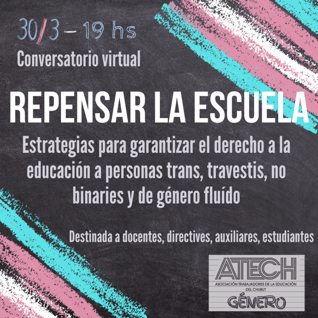 Como Sindicato que lucha por una Educación Pública, de calidad, laica y con perspectiva de género entendemos que es necesario repensar la escuela y revisar las prácticas de quienes la habitamos para hacer de ella un espacio respetuoso, libre de discriminación, en el que se garantice el derecho a la educación de las personas trans, travestis, no binaries y de género fluido; población que en el marco de la exclusión estructural en la que vive, ve vulnerados su derecho a un trabajo formal, a la salud, a una vivienda digna y a la educación.