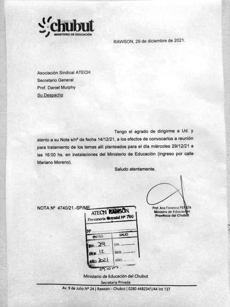 Hoy, en respuesta a nuestra solicitud, hemos recibido convocatoria a una reunión con el gobierno provincial para las 16 hs. en el Ministerio de Educación.
