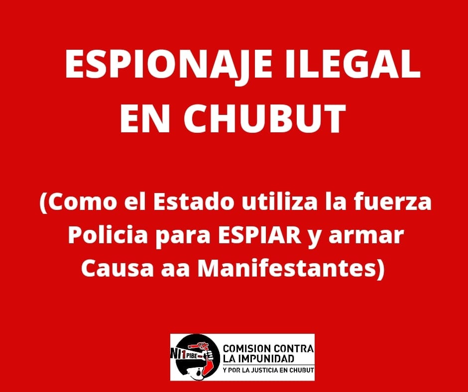 Lo que reafirma lo que venimos denunciando desde esta Comisión. Espionaje, que se produce en todas las manifestaciones, con personal policial sin identificar y en carácter de infiltrados. Y que este tipo de prácticas, luego son utilizadas con la finalidad del ARMADO DE CAUSAS CONTRA MANIFESTANTES, REPRESENTANTES SINDICALES, Y ASAMBLEAS AMBIENTALES.