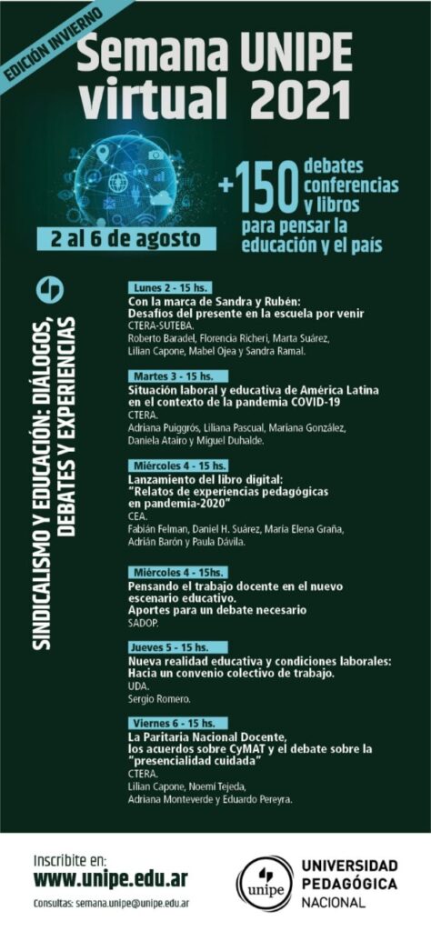 La Universidad Pedagógica Nacional (UNIPE) llevará a cabo del 2 al 6 de agosto la «Semana UNIPE virtual 2021» edición invierno.