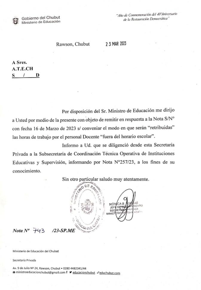 Luego de que el Ministerio de la Educación diera a conocer que en el Calendario escolar 2023 se habilitaba a los equipos directivos a convocar a docentes los días sábados fuera de los horarios de trabajo habitual, ATECH exigió al Ministerio que formule el modo en que serán retribuidas esas horas de trabajo extra como lo establece el sistema legal y vigente de trabajo. (Lee acá la presentación realizada: https://atechlila.duckdns.org/los-sabados-no-trabajamos-gratis/ )