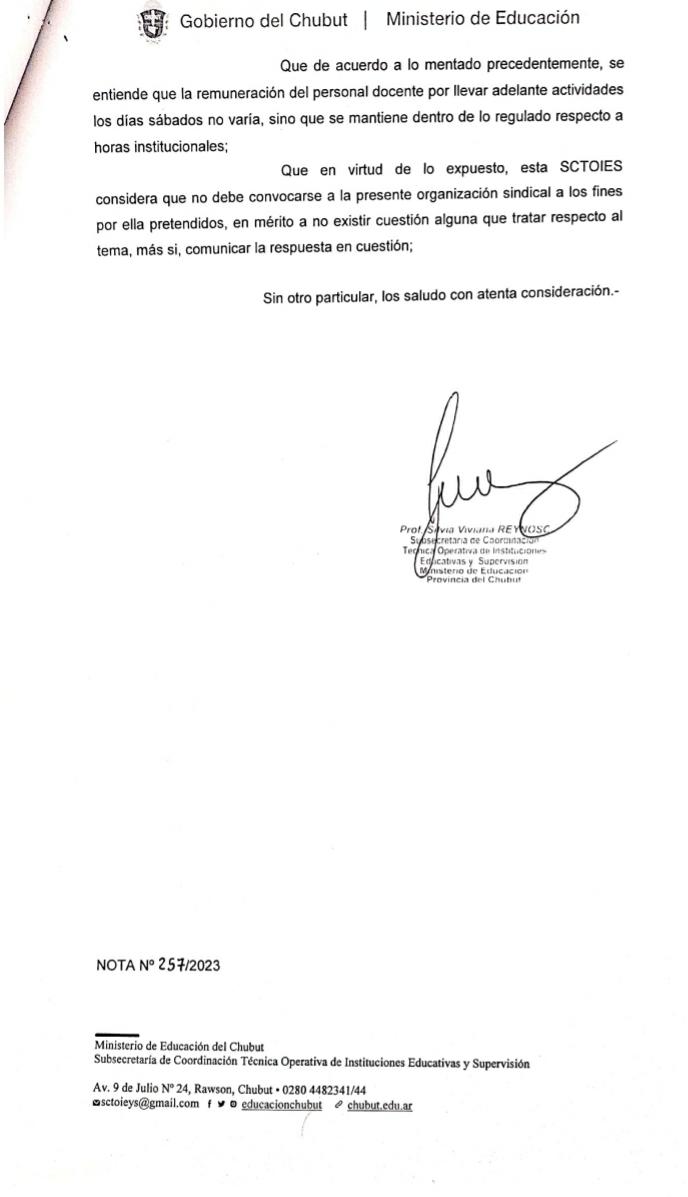 Dejamos a disposición a continuación la respuesta de las autoridades del ministerio de educación sobre los días sábados y el trabajo docente. En la misma queda claro el carácter opcional de las actividades institucionales y laborales de los días sábados para la docencia.