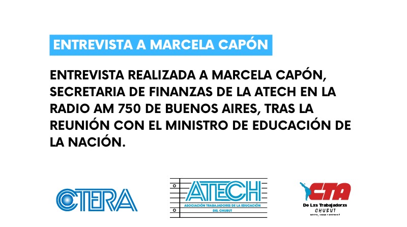 Compartimos la entrevista realizada a Marcela Capón, Secretaria de Finanzas de la ATECh en la radio AM 750 de Buenos Aires, tras la reunión con el Ministro de Educación de la Nación.