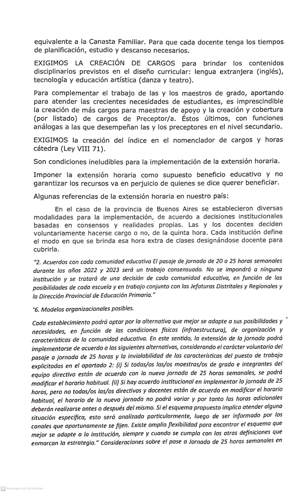 Exigimos se dé continuidad a la implementación de la jornada completa en aquellas escuelas que iniciaron la transformación, tal como consta en acta 19 de septiembre.