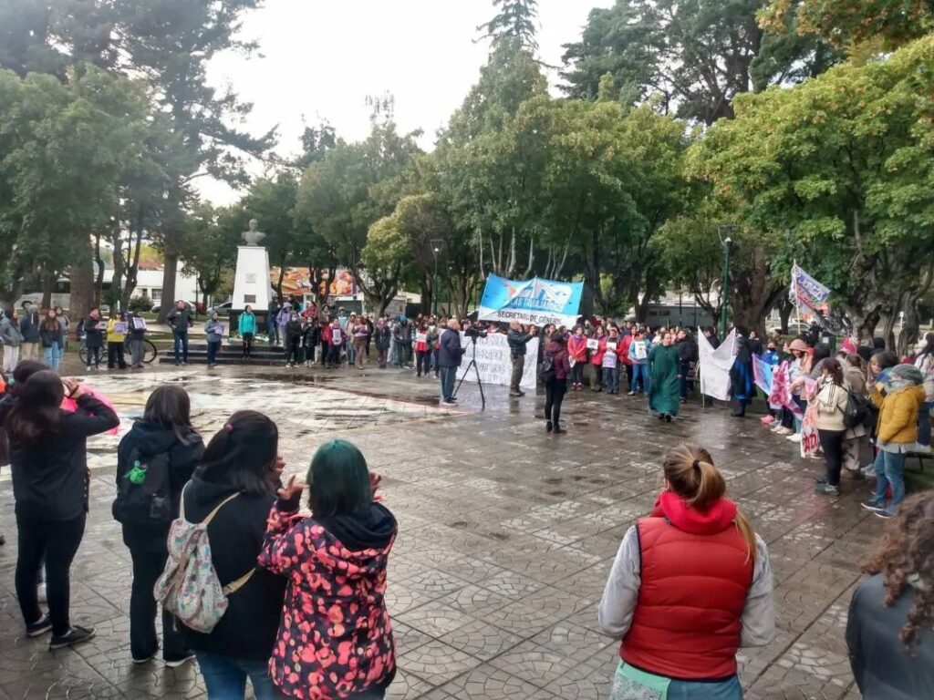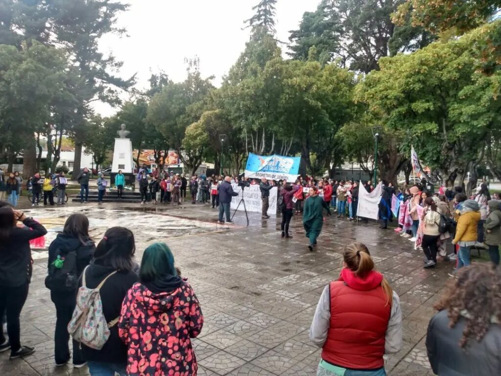 La lluvia y el frío de la cordillerana ciudad de Esquel no alteraron el cronograma de acciones coordinadas con la #ATECh y otras organizaciones feministas. Se realizó una importante movilización por el centro de la ciudad en el marco del paro de la Mujer y las disidencias.