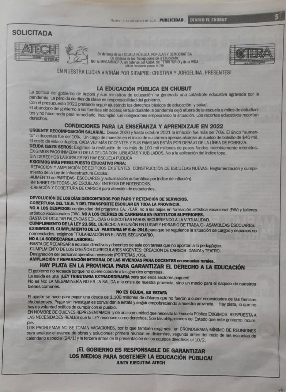 Como dijimos el 14/12/2021 en nuestra solicitada, los problemas no se toman vacaciones. Exigimos un cronograma mínimo de reuniones. La primera en Diciembre, la segunda en Enero, al inicio del calendario especial (24/1) y la tercera en febrero antes de la presentación de los equipos directivos (10/2).