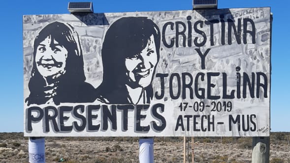 La Regional Sur e integrantes de Junta Ejecutiva de ATECH restituyeron el cartel del km 1572 de la Ruta Nacional N° 3, lugar en el que el 17 de Septiembre de 2019 perdieron la vida las docentes María Cristina y Jorgelina.