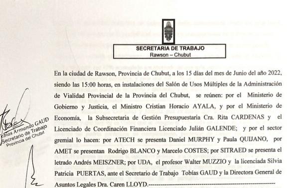 Dejamos a disposición el acta de la reunión paritaria que se desarrolló este miércoles 15 de junio en el edificio de Vialidad Provincial, en la ciudad de Rawson.