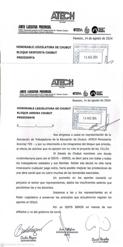 Desde la Asociación de Trabajadores y Trabajadoras de la Educación décimos NO al incremento de aportes a nuestra Obra Social propuesto en el proyecto de ley 151/24.