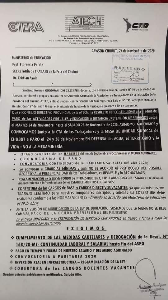 Continuidad de medidas de fuerza. Por la Educación Pública #ATECH y en defensa del AGUA, EL TERRITORIO y la VIDA #CTA. Muchas deudas internas del gobierno de #CHUBUT #CTA de lxs #Trabajadorxs.