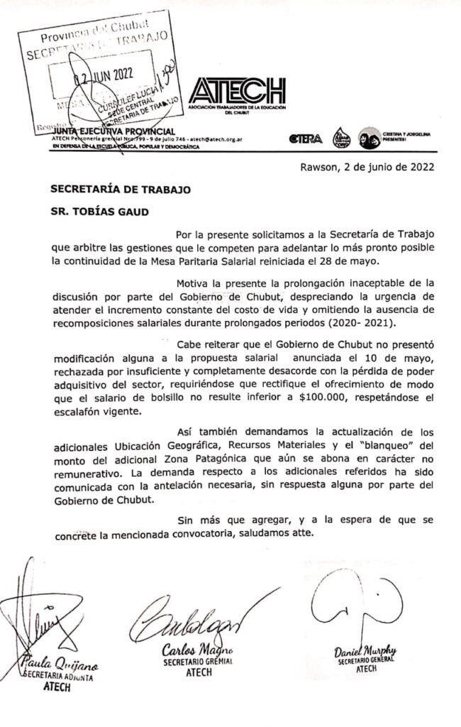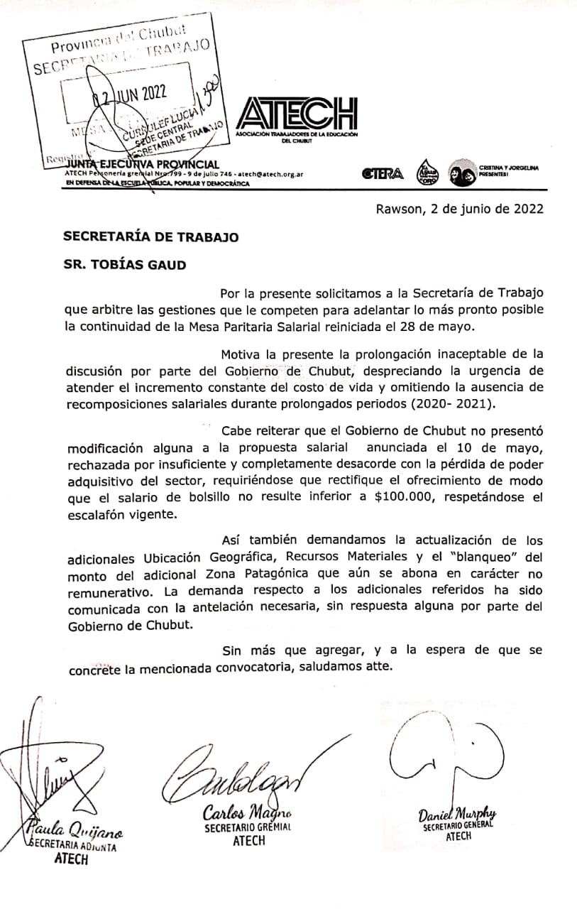 Sobre el final de la semana pasada enviamos una nueva nota a la secretaría de Trabajo solicitando «adelantar lo más pronto posible» la continuidad de la Mesa Paritaria.