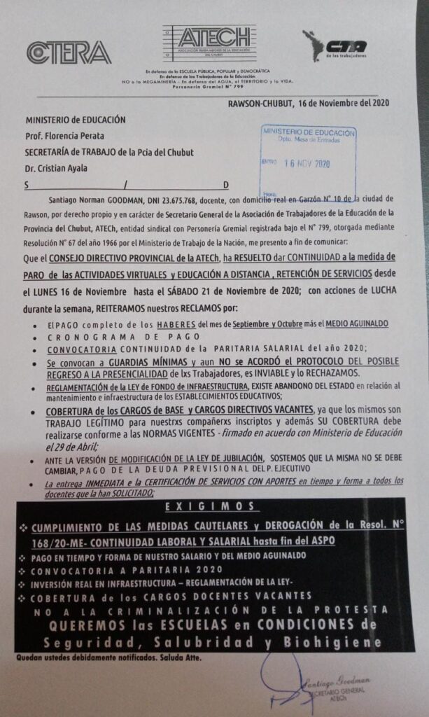 Miércoles 19 de noviembre paro nacional de Trabajadores
