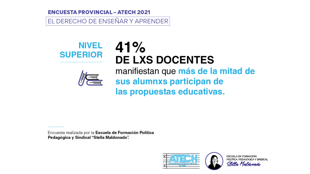 6 DE CADA 10 DOCENTES DEL NIVEL SUPERIOR EXPRESA QUE MENOS DE LA MITAD DE SUS ALUMNXS PARTICIPAN DE LAS PROPUESTAS EDUCATIVAS