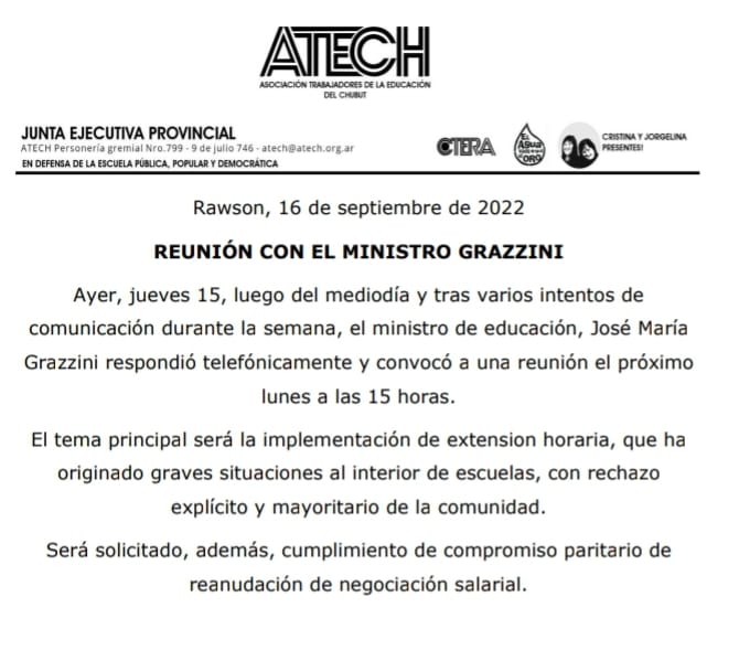 Grazzini respondió telefónicamente y convocó a una reunión el próximo lunes a las 15 horas.