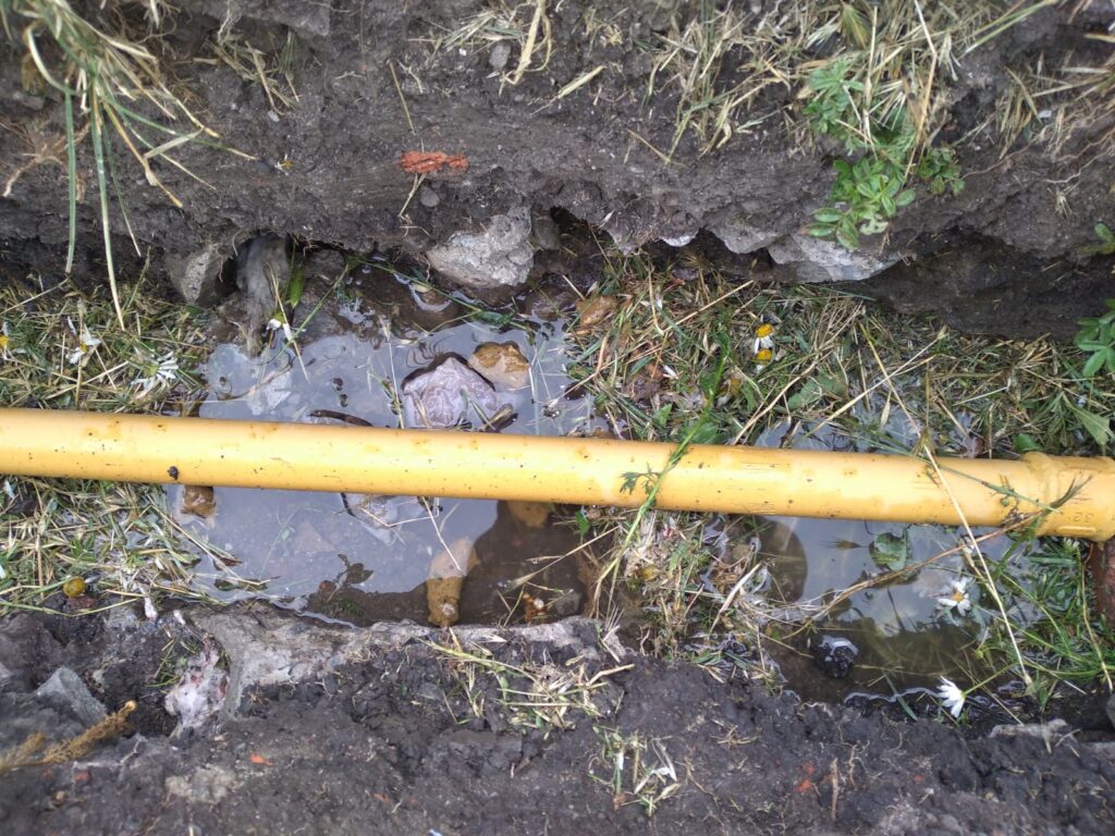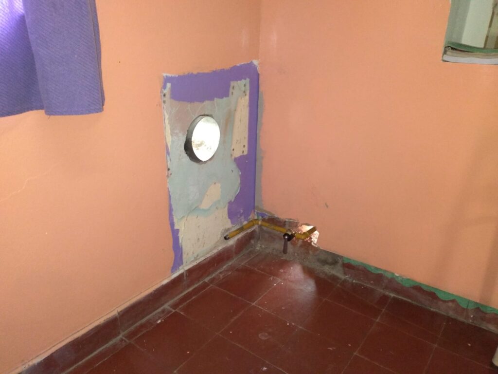 En la visita, también se observó que al cambiar uno de los caños de gas nuevo, se rompió un caño de cloaca y se observa materia fecal en la zanja abierta. Además no fue reparado el techo del tanque de agua y se observan chapas «flameando» al ritmo del viento.